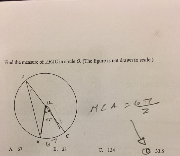 Circle O Is Shown Below The Diagram Is Not Drawn To Scale What Is The Measure Of Angle Bac Brainly Com